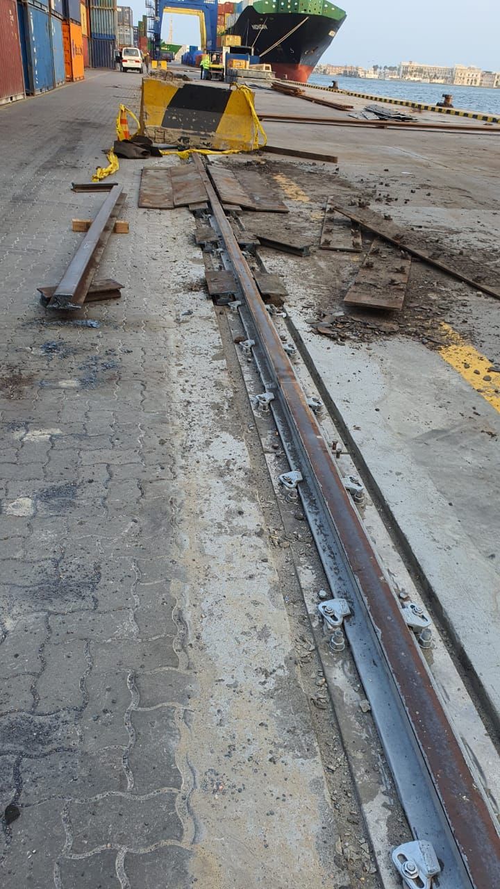 Completed 960 meters of crane rail system refurbishment at Port Said, improving crane performance and port efficiency.